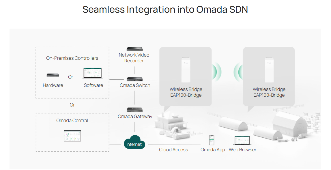 OMADA EAP100-Bridge Kit, 3Port Gigabit, 300Mbps, 2,4Ghz, Pasif Poe, Indoor/Outdoor (1km)